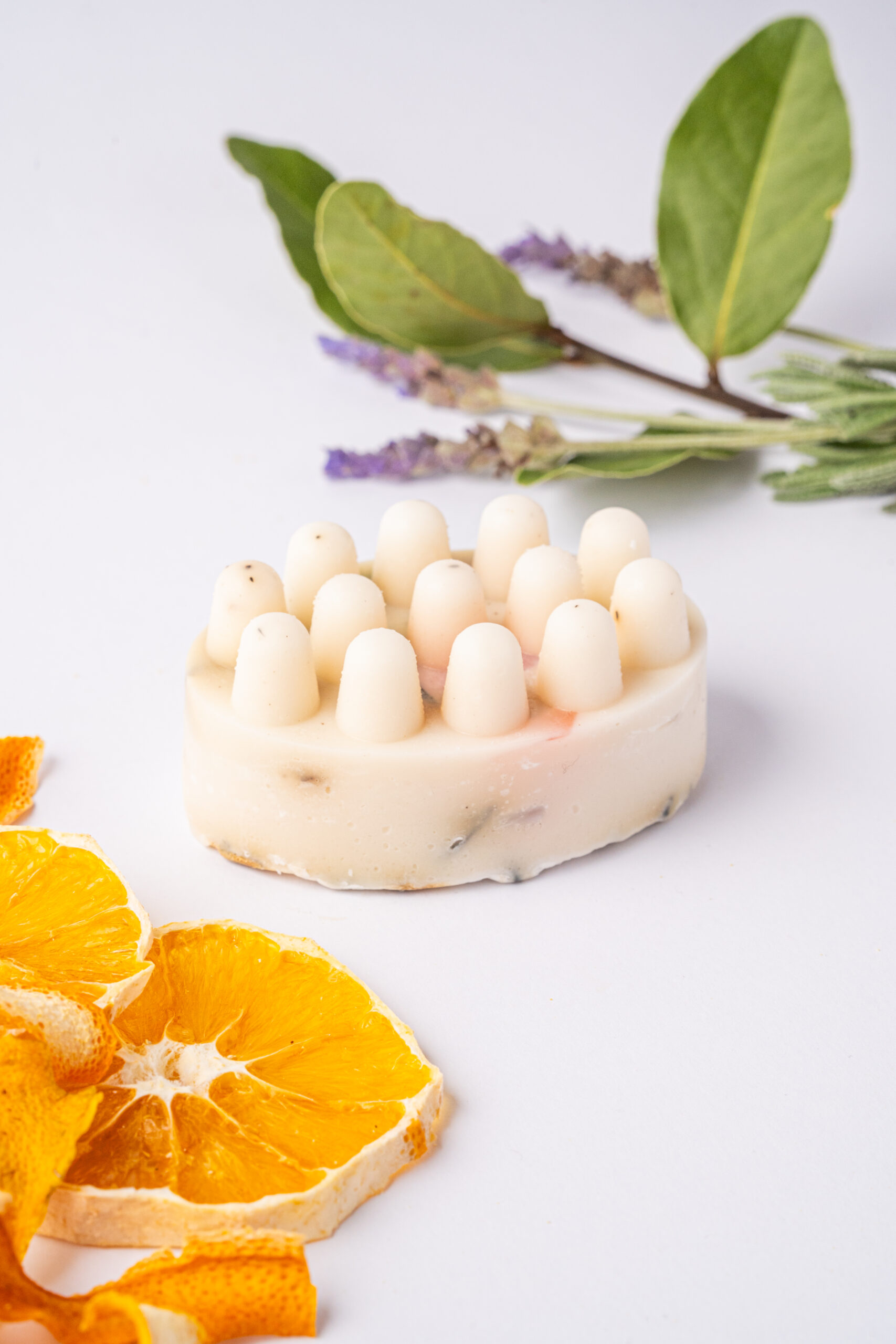 Seu sabonete contém glicerina com azeite extra virgem e óleo de coco, lavanda seca, óleo essencial de lavanda, ylang ylang, gerânio e peônia. Os sabonetes podem ter formatos diferentes.