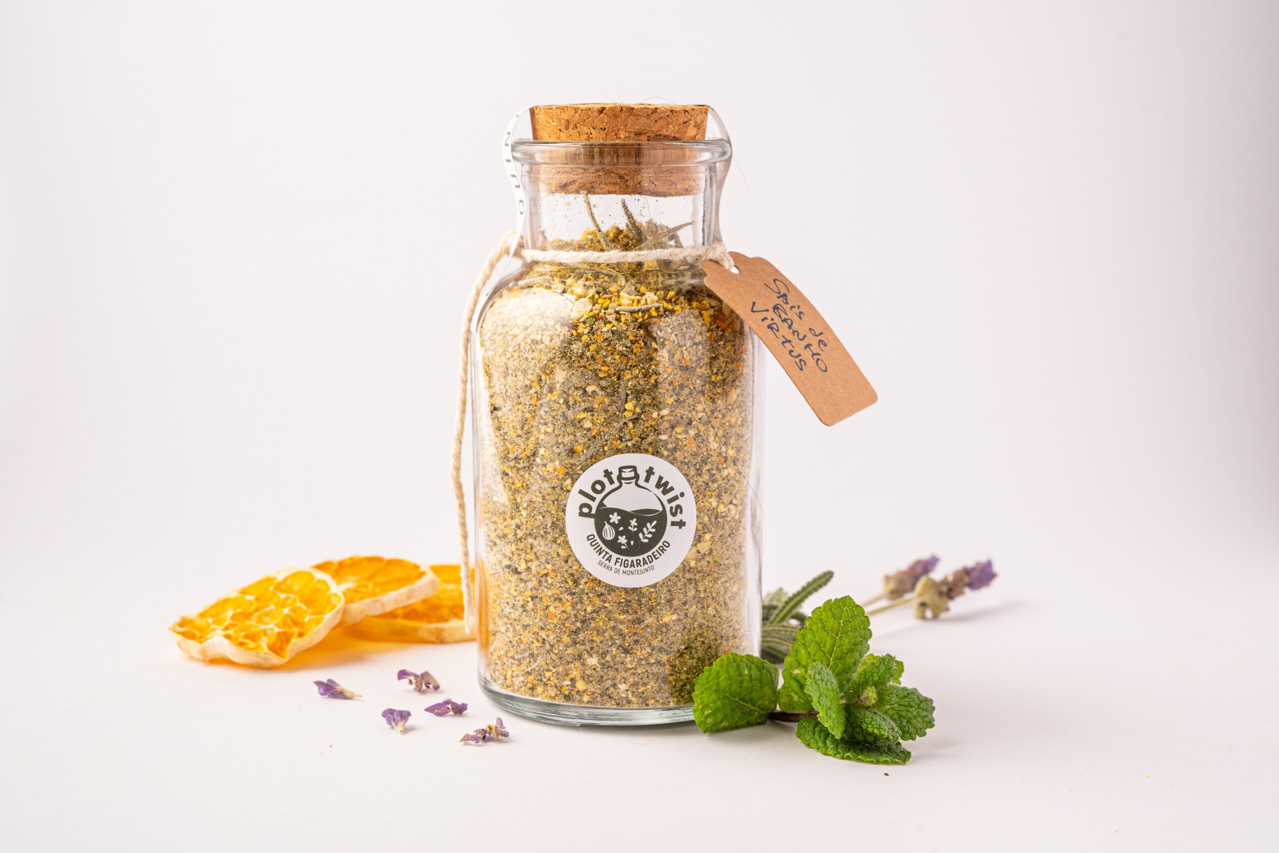 Ingredientes: Sal Epsom, oregãos, casca de citrinos, lavanda seca, bicarbonato de sódio, óleo essencial de lavanda e bergamota.