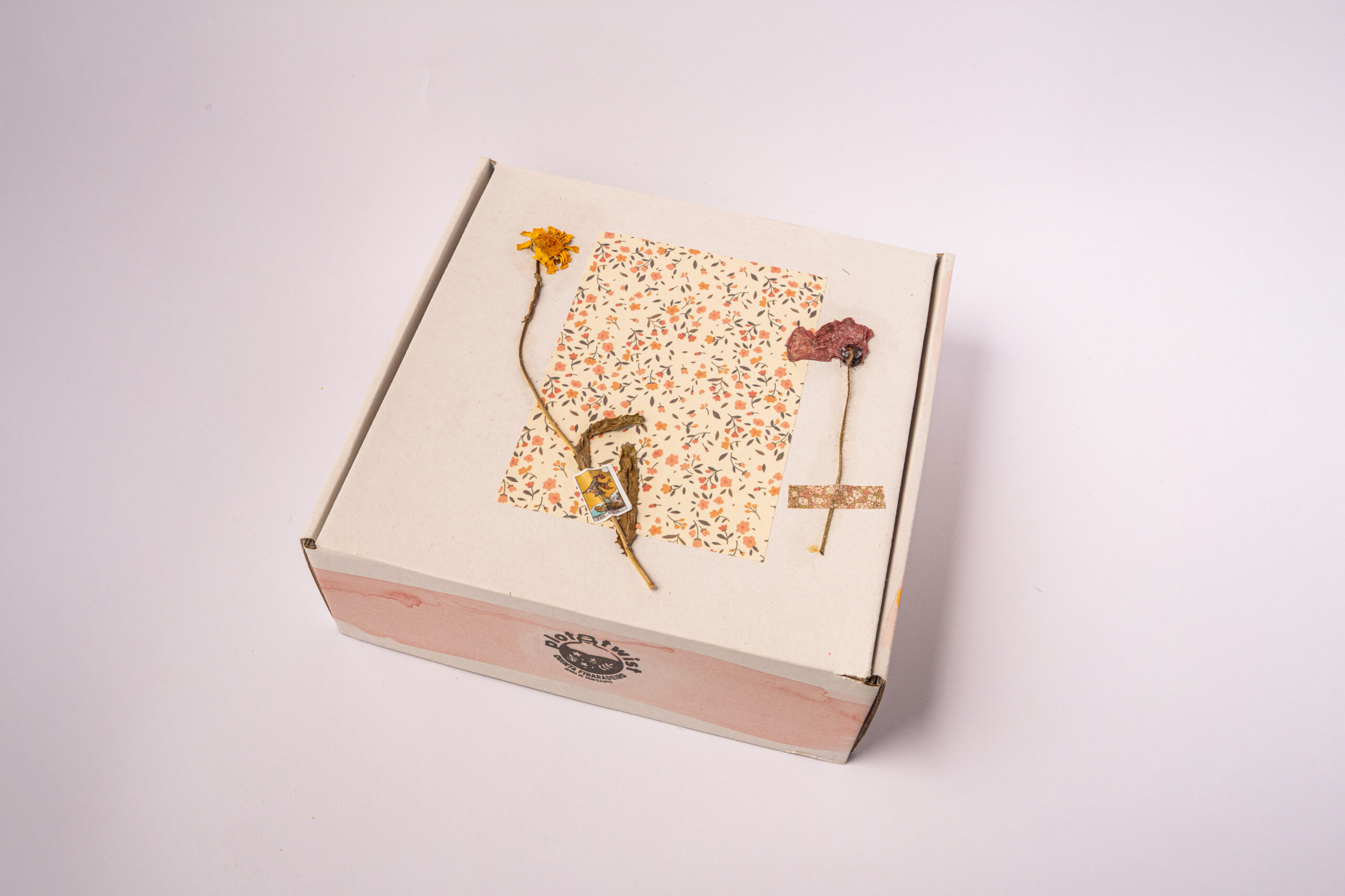 Vem em caixa de cartão personalizada artesanalmente.